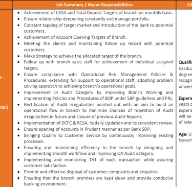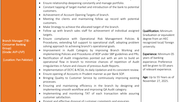 BOP Taqwa Islami Banking - Branch Manager Jobs